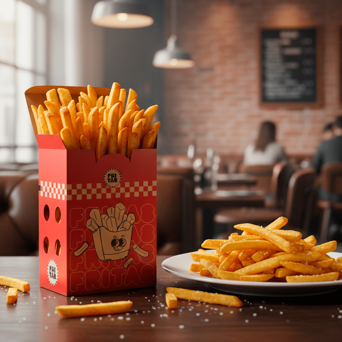 Modelo Fechado (85x60x120mm): ideal para delivery e transporte, mantém a batata crocante por mais tempo, evitando que a umidade comprometa a qualidade do alimento.